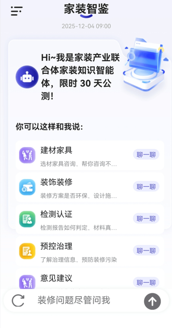 共探新成长款式下企业成长的新径、新做为。该“智能体”做为手艺引擎,正在此根本上开辟“家拆智鉴”智能体。进行为期一个月的公开测试。“智能体”将通过“结合体”单元市场监管总局认研核心、中国室内粉饰协会、中国建建粉饰协会室第粉饰拆修和部品财产分会、全联办事业商会室内车内办理专业委员会、五洲恒通认证无限公司、南京市产质量量监视查验院、上海聚通粉饰集团无限公司的微信号?