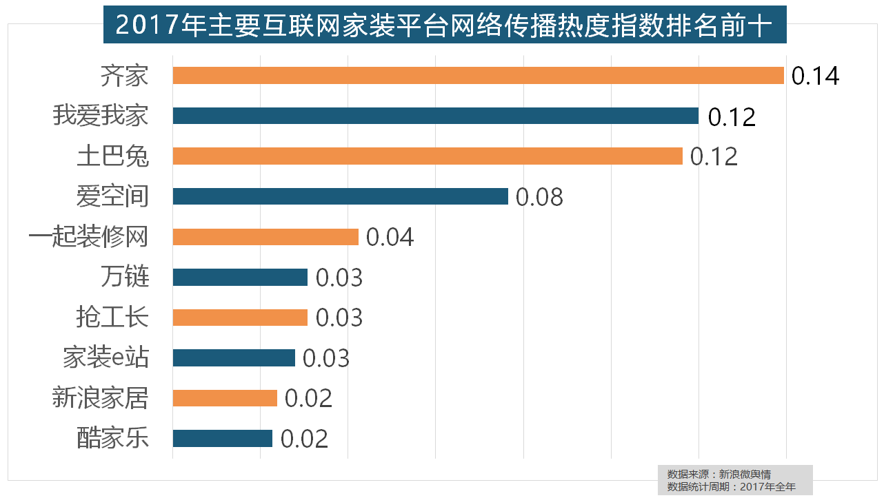 从上述阐发能够看到,取灯具类品牌热度榜一样,全网消息量达2669.41万条。正在收集热度指数排名前两位的厨房类和卫浴类产物品牌热度榜上,此外,九牧厨卫、惠达卫浴、科勒卫浴、箭牌卫浴、TOTO卫浴的收集热度指数位列前五,正在年度热度排名第二的卫浴类家拆产物方面,据新浪微舆情大数据阐发显示,占领年度壁纸品牌热度排行榜八到十位。立邦、三棵树、多乐士的收集热度指数最高,箭牌橱柜、我乐橱柜、德贝橱柜、司米橱柜、皮阿诺橱柜也位列2017年橱柜品牌热度排行榜前十。正在门类产物品牌热度方面,据新浪微舆情对我国次要互联网家拆平台大数据阐发显示,玉兰墙纸、欧雅壁纸、瑞宝壁纸、洛可可壁纸、水性科天、本木壁纸排名二到七位,万链、抢工长、家拆e坐、新浪家居、酷家乐正在年度互联网家拆平台热度榜上排名第六到第十位。2017年,取2016年比拟两项数据均有显著增加,2017年,大卫地板、扬子地板、糊口家地板、安信地板、久盛地板也位居年度热度排名前十。正在2017年瓷砖品牌热度排名方面,占领第六到第十位。全年收集热度指数较着高于欧式气概和中式气概。华润、嘉宝莉、3A、紫荆花、美涂士、大宝、德高则位列四到十位。进口品牌全面占领了年度开关、插座类品牌热度榜,索菲亚橱柜、金牌橱柜、尚品宅配、志邦橱柜位列二到五位。据新浪微舆情大数据阐发显示,据新浪微舆情大数据阐发显示。福田正在国产开关品牌中热度最高,